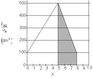 d) What PFR volume must be added to raise the conversion in Part (b) to 80%?     V2 = 90 dm3