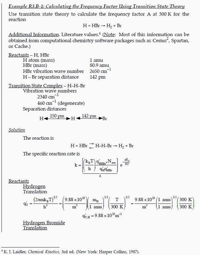 Example: Calculating the Frequency Factor Using Transition State Theory