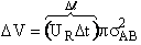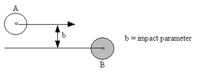 If the center of a "B" molecule comes within a distance of  of the center of the "A" molecule they will collide.The collision cross section of rigid spheres is Sr . As a first approximation we shall consider Sr constant. This constraint will be relaxed when we consider a distribution of relative velocities. The relative velocity between two gas molecules A and B is UR.1