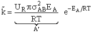 We want to provide at least a qualitative understanding as to why the rate law takes this form. We will first develop the collision rate, using collision theory for hard spheres of cross section Sr,  When all collisions occur with the same relative velocity, UR the number of collisions between A and B molecules, , is