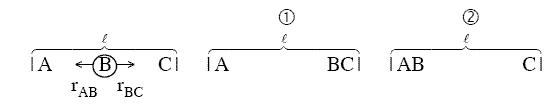 A potential similar to atoms B and C can be drawn for the atoms A and B. The F shown on the figures represents the attractive force between the molecules as they move in the direction shown by the arrows. That is the attractive force increase as we move towards the well (ro) from both directions, rAB>ro and rAB<ro.