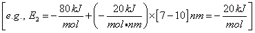 For Example, the energy, E1 (kJ/mol), of the BC molecule at a position rBC = 5 nm relative to r1 (2 nm) where E1R = -50 kJ/mol and S1 = 10 kJ/mol/nm is