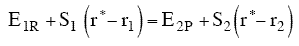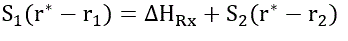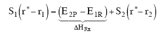 Let S2 be the slope of the AB trajectory between r2 and rBC=rAB = r*. Similarly for AB, starting on the product side at E2P, as the distance rAB increases the distance rBC decreases and the energy E2 at a distance rBC is