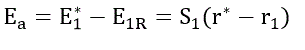 Let S1 be the slope of the BC trajectory between r1 and rBC = rAB = r*. Starting at E1R and r1, the energy of BC, E1, at a separation distance of rBC can be calculated from the product of the slope S1 and the distance from r1 at E1R.