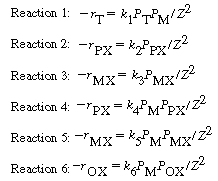 the kinetics? (1) Packed-bed reactor. (c) How would you go about maximizing (e.g., feed concentrations, ratio of toluene to methanol fed, etc.) the production of (1) p -xylene. (d) The activation energies for the six reactions are (in