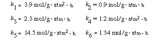 The feed conditions are: P M = 5 atm, P T = 5 atm, T = 450°C, and the total molar feed rate is 10 mol/ min. (a) Which of the reactions can be neglected to further simplify