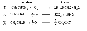 | Air and acrolein are fed to the reactor. The rate laws for the reaction (i= 1, 2, 3) are | |||