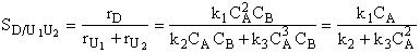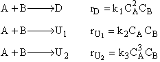 Determine the instantaneous selectivity, SD/U, for the liquid phase reactions: