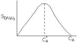Sketch the selectivity as a function of the concentration of A. Is there an optimum and if so what is it?