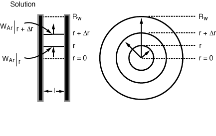 | Recalling the constitutive equation for the molar flux W Ar in radial coordinates yields | |||