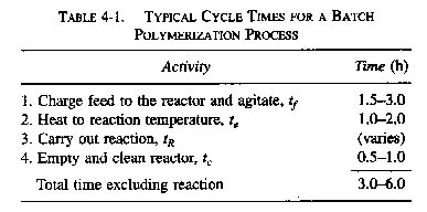 Reactor is charged via two holes in the top of the tank; while reaction is carried out, nothing else is put in or taken out until the reaction is done; tank easily heated or cooled by jacket |