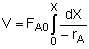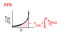 Given -rA as a function of conversion, one can size any type of reactor. The volume of a PFR can be represented as the shaded area in the Levenspiel Plot shown below.