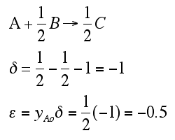 For the gas phase reaction the feed is equal molar in A and B. Calculate e. Solution A is the limiting reactant Stoichiometric Tables