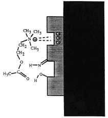 The acetylcholine molecule has a positive nitrogen group which is attracted to the negative charge of an acetylcholine esterase receptor site on the diaphragm.