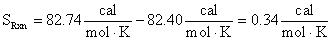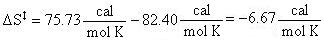 The entropy can be calculated in the normal fashion by taking the difference of the products and reactants entropy: