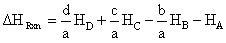 where the superscript SM denotes the statistical mechanically calculated enthalpy. Substituting this definition into the usual definition of the heat of reaction we arrive at: