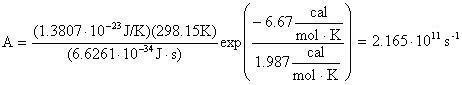 The preexponential factor (A) can be calculated using a bit of transition state theory that will be explained more in depth in the next example. For now the equation to calculate the preexponential factor is:
