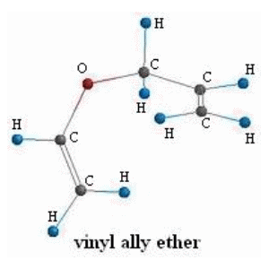 After drawing the reactant structure in the software we run a basic geometry optimization with a frequency calculation to obtain the thermodynamic quantities: entropy, enthalpy, zero point energy, and ground state energy. The data output at STP in tabular form for vinyl allyl ether is: