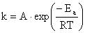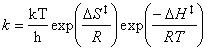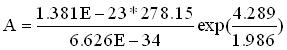 Examining equation (6) we see that it resembles the Arrhenius rate equation.We can see that the first and second terms are equal to the preexponential factor and after defining the activation energy as:we find that the last term is identical to the last term in the Arrhenius rate equation. Therefore, the preexponential is calculated by: