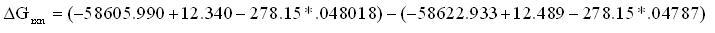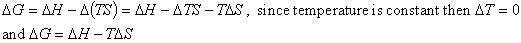 The Gibbs free energy is normally calculated like so:Since we have already established that the enthalpy is incorrect the above equation can not be used. Therefore, we shall substitute the equation for the heat of reaction into the Gibbs free energy change equation.