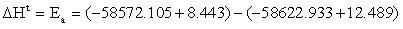 The activation energy can be calculated by taking the difference of the transition state enthalpy and the reactant enthalpy. With the enthalpy being defined as the sum of the ground state energy and the statistical mechanically calculated enthalpy.