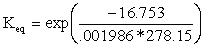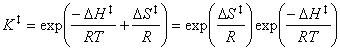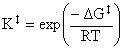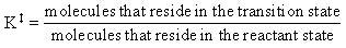 This is very much like the over all equilibrium constant but deals with the transition state instead of the overall reaction. The relation between the transition state equilibrium constant and the Gibbs free energy change of the transition state is:(3)