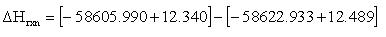 The heat of reaction which is usually defined as the difference of the products enthalpy and the reactants enthalpy in this case is not accurate. The enthalpy calculated by the software is solely based on statistical mechanics and does not take into account the ground state energy which is a significant contribution to the total energy of the molecule. But all is not lost, a function of the software is to calculate the ground state energy using quantum mechanics. Therefore we can simply take the sum of the enthalpy and the ground state energy to equal the overall energy of the molecule or total enthalpy, and calculate the heat of reaction by taking the difference between the products and reactants overall energies.
