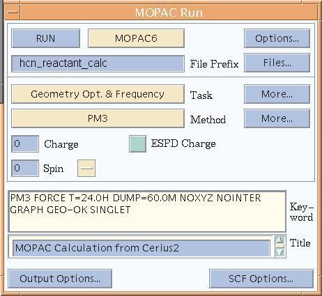 2. The MOPAC Run Options window will pop up.
