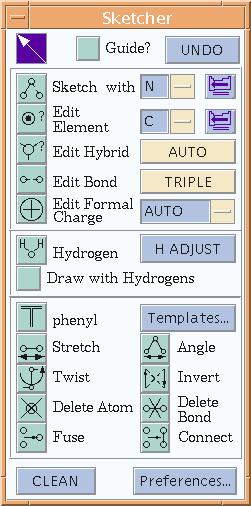 6. Next to the sketch button in the sketch window left click on the drop down buttonnext to the blue box where there should presently be a C and change to a N indicating that you will be drawing a nitrogen atom next.