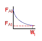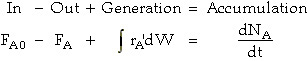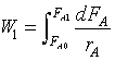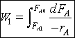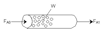 The equation gives the catalyst weight necessary to reduce the entering flow rate from FA0 to FA1 by chemical reaction.