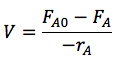 The General Mole Balance Equation (GMBE) applied to the four major reactor types (and the general reaction, A → B):
