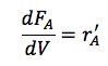 For a catalytic reaction, we refer to -rA', which is the rate of disappearance of species A on a per mass of catalyst basis.