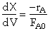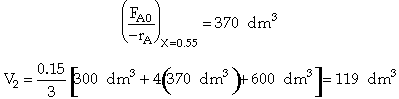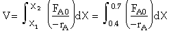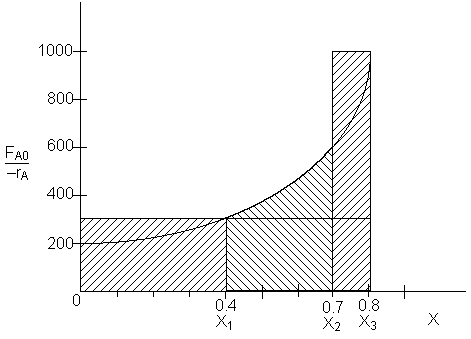at X = X1 = 0.4 the (FA0/-rA1) = 300 dm3