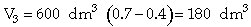 V1 = (300 dm3) (0.4) = 120 dm3