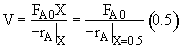 a) What PFR volume is necessary to achieve 50% conversion? V1 = 150 dm3