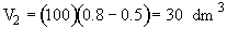 $V_2 = (100) (0.8 - 0.5) = 30 dm^3$