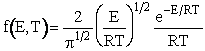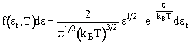 where f(ε,T) de is the fraction of molecules with kinetic energies between ε and (ε+dε). We could further multiply and divide by kBT