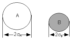 If the center of a "B" molecule comes within a distance of of the center of the "A" molecule they will collide.The