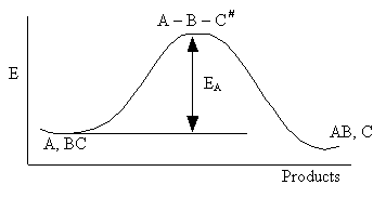 For simple reactions the energy, EA, can be estimated from computational chemistry programs such as Cerius2 or Spartan, as the heat of reaction between reactants and the transition state