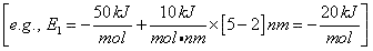 For Example, the energy, E1 (kJ/mol), of the BC molecule at a position rBC = 5 nm relative to r1 (2 nm) where E1R = -50 kJ/mol and S1 = 10 kJ/mol/nm is