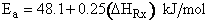 Equation (8) gives the Polyani correlation relating activation energy and heat of reaction.