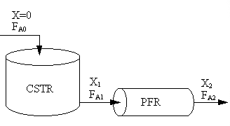 Combine: Evaluate: Check units, X is dimensionless. With a CSTR upstream of the PFR, the conversion increased from 0.5 to 0.684.