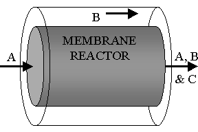 A pure feed of formaldehyde (A) enters the reactor. The membrane only allows the hydrogen to pass through it.