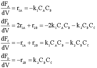 Our first step to solve this multiple reaction problem is write our mole balances: