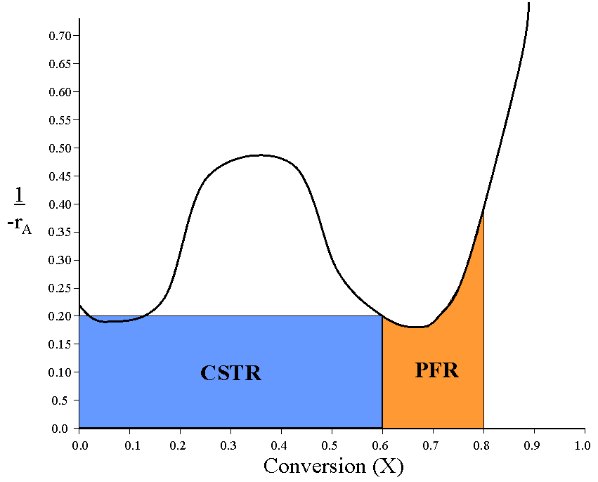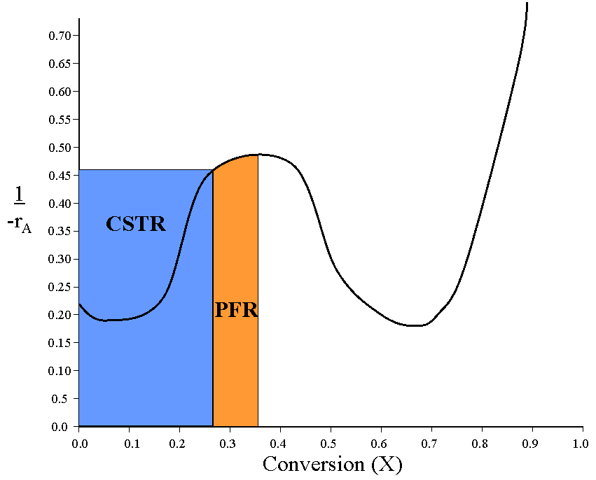 First, the group analyzes the problem by sizing the reactors graphically on the plot of the inverse reaction rate (1/-rA) versus the conversion (X).