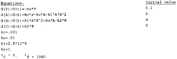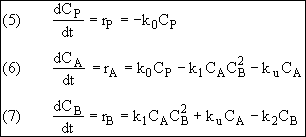 The initial conditions are that when t = 0 then: CP = CP0 and CA0 = CB0 = 0