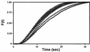 Figure 13.5.N-1 Cumulative RTD function for arterial blood flow in the eye. Courtesy of Med. Eng. Phys.2 |