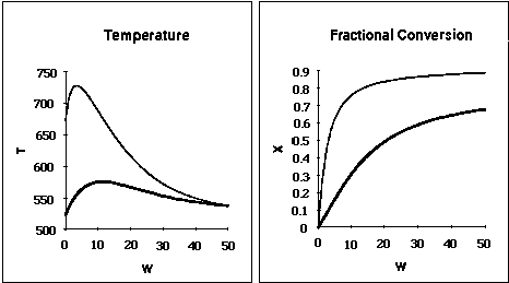 FA0 = 20 moles/min CA0 = 3 moles/dm3 CI0 = 3 moles/dm3 | ![]()