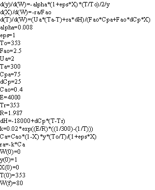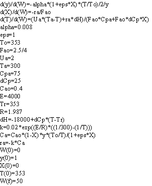 5.) For Problem 5, use W = 80 kg, rather than the catalyst weight given in