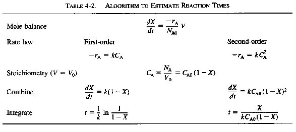 The reaction time necessary to reach a conversions X in a batch reactor is